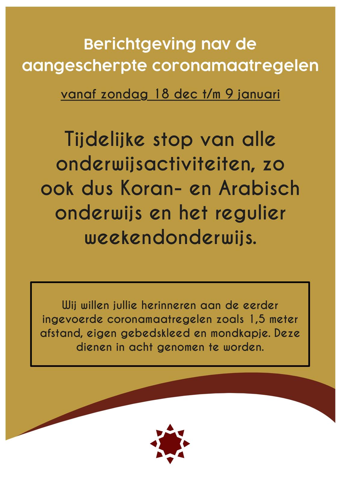 Verheugd zijn wij vanuit het Islamitisch Centrum Imam Malik in Leiden jullie enkele aankondigingen te doen, aangaande ons Coronabeleid.